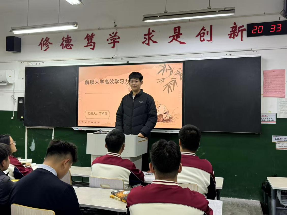 在基础学科指导之外,丁初良同学从专业认知角度展开分享。他梳理了城建类的专业知识与学科发展脉络,提醒新生们尽快从高中被动式学习转换到大学自主式学习,着力培养自主学习与学术探索能力。结合学习中的认知误区与实践难题,他分享了一些学习方法与时间管理技巧,助力新生们科学规划学业生涯,为后续专业课程的深入学习筑牢根基。