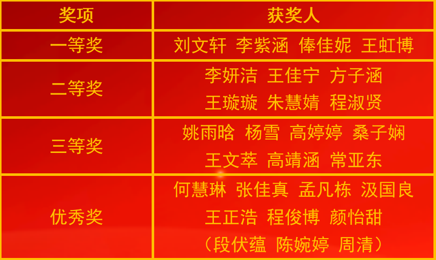 此次比赛为学生提供了展示自我的平台,以学生喜闻乐见的方式深化了宿舍安全宣传教育成效,助力营造安全、卫生的宿舍环境。活动共设置四个奖项,获奖名单如下:
